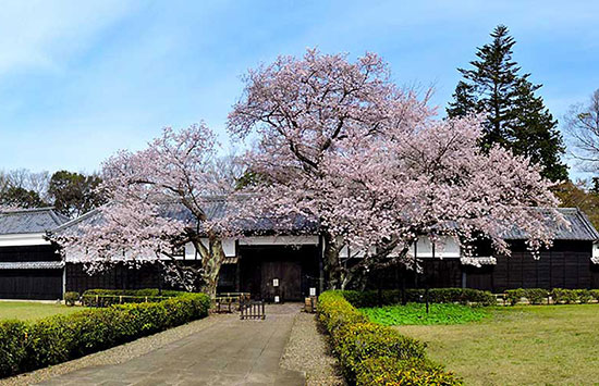 国指定重要文化財の旧吉田家住宅歴史公園の桜。3月下旬に見頃を迎えます。(T.O.)