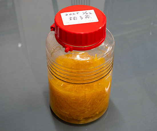 皮をむいて下ごしらえをしたゆずの皮に、